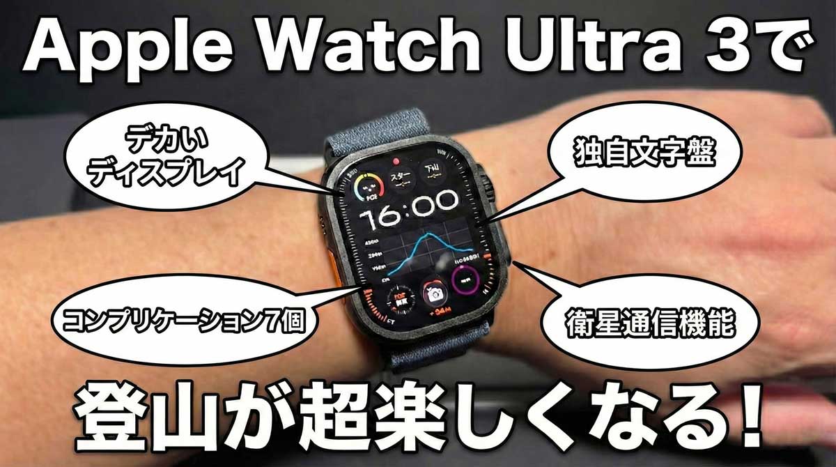 Apple Watch Ultra 3(2025年発売)を購入してみました。 低山登山にて活用していますが、登山が楽しく安全になるのでおすすめのポイントを紹介してみます。 ①Apple Watch Ultra 3は大画面だから登山にピッタリ。 大きな画面で視認性最高 Apple Watch Ultr... GOOD ITEM
