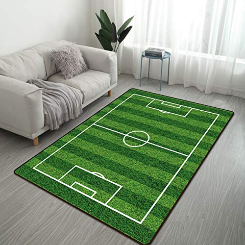 サッカーフィールドがデザインされた大きめのラグ・カーペットです。