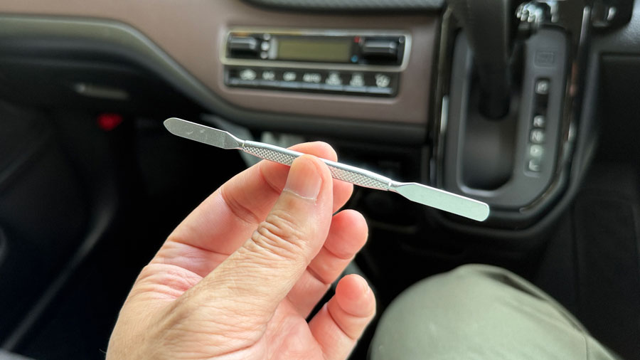 個人的にはプラスチックのリムーバーの方が傷つけにくいと思いますが、養生テープを貼ったりすることで金属リムーバーでも傷つかないようにしました。