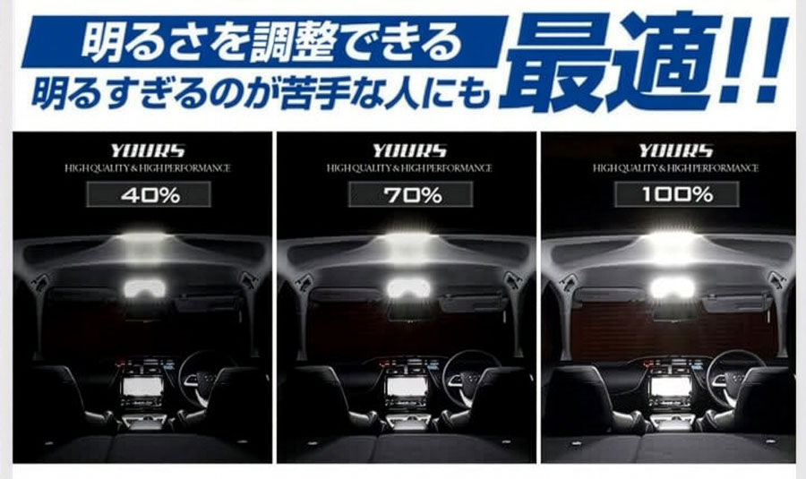 このYOURS(ユアーズ)のLEDルームランプセットは、調光機能(減光機能)がついています。