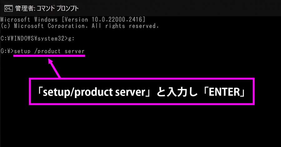 サーバーと認識させることで、要件チェックを回避してインストールします。